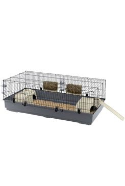 RABBIT 140 je velmi prostorná klec, ideální pro ubytování jednoho nebo více králíků. Dodává se s příslušenstvím, včetně dvou plastových podavačů na seno, dvou lahví na pití a dvou misek na jídlo. K dispozici jsou dvě malé králíkárny, nezbytné pro chvíle relaxace a vybavené stupňovitou konstrukcí, která umožní vašim králíkům snadno vstoupit. Dva domečky můžete umístit, kamkoli chcete, uvnitř boudy. Nakonec je tu plastový žebřík, který může váš králík použít, aby se dostal z boudy a mohl se volně potulovat po vašem domě.