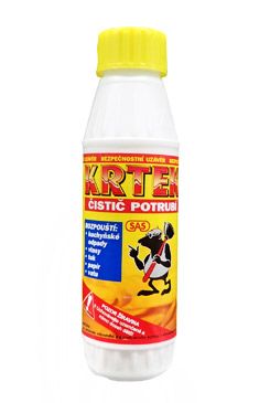 Čistič odpadů Krtek čistí potrubí kde rozpouští kuchyňské odpady, vlasy, tuky, papír, vatu. Je velice agresivní. Nelze ho použít na hliníkové potrubí. Má bezpečnostní víčko..