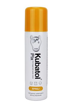 Užití: Kožní spray s desinfekčním účinkem. Obsažená látka – bukový dehet – lokálně desinfikuje. Pomocné látky obsažené ve sprayi vytvářejí nad místem zásahu plastický kryt, který chrání před přístupem vlhkosti a zevních vlivů, ale nebrání perspiraci kůže. Vysoušecí a desinfekční účinky bukového dehtu spolu s vytvořeným mikroklimatem podporují blahodárně rychlost regenerace ošetřovaného místa. Bukový dehet a ekologický hnací plyn zvyšují užitnou hodnotu Kubatolu Pix spray. Používat zevně – na desinfekci plošných odřenin nebo míst postižených dermatomykózou, k desinfekci poranění způsobených kanibalismem zvířat, pro kosmetické úpravy paznehtů, jako pomocný prostředek při kopytní chirurgii.